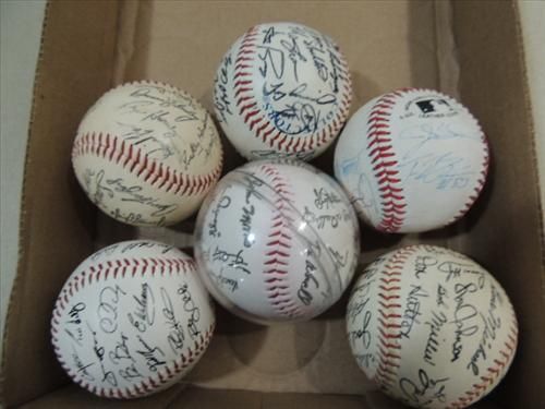 LOT 6 SIGNED BASEBALLS: 5 ARE FACSMILIE SIGNATURES. AS SHOWN. VIEW PICTURE FOR DETAIL.