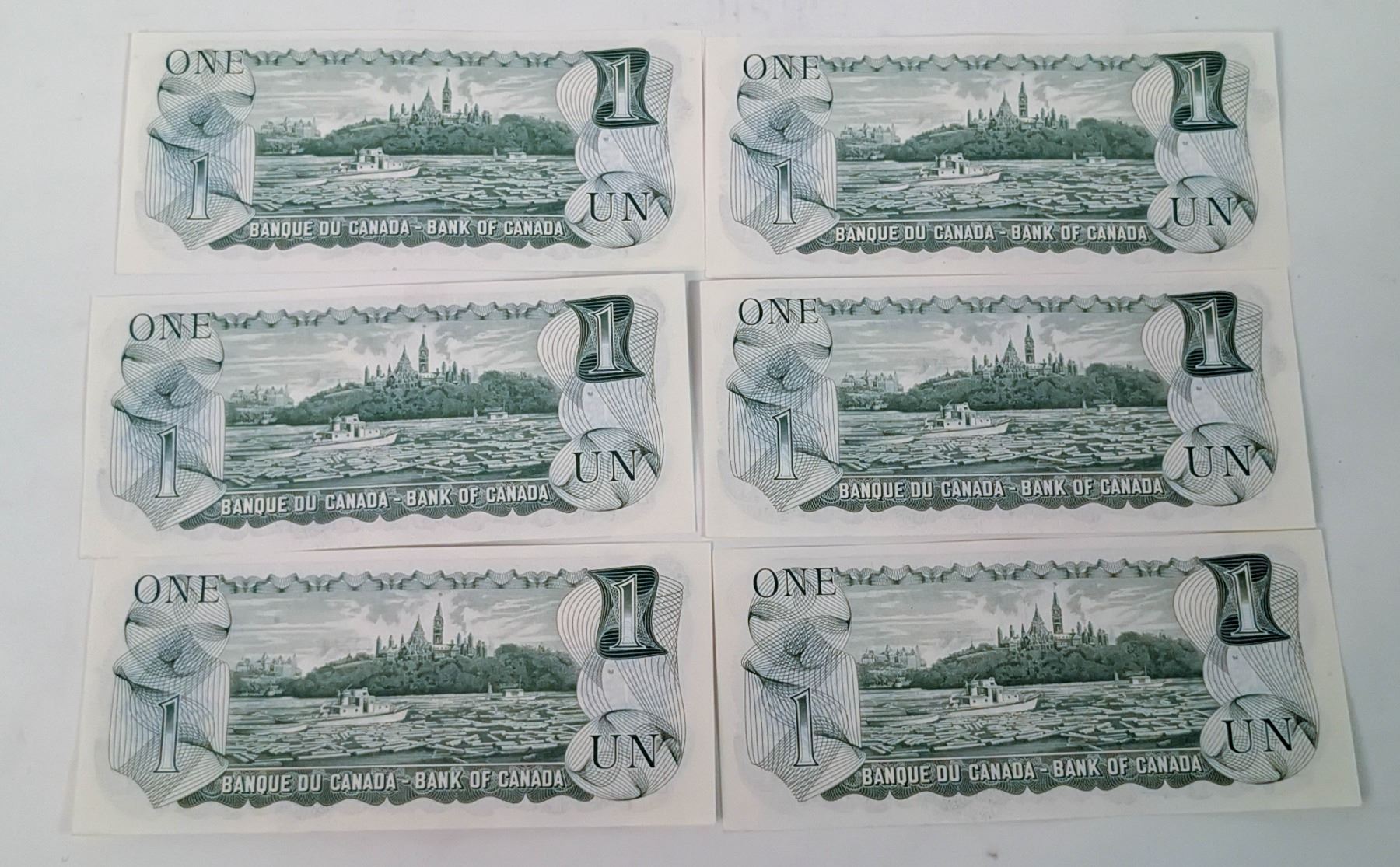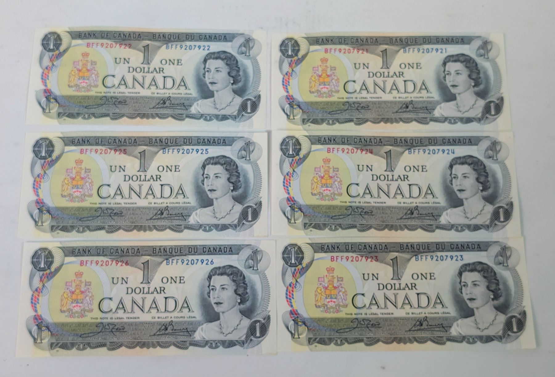 LOT 6 UNCIRC SEQUENTIAL CANADA $1 BILLS