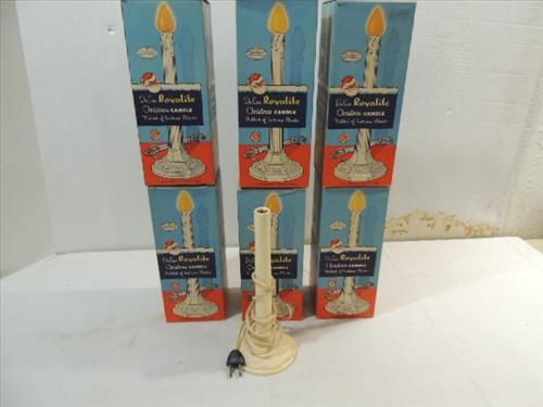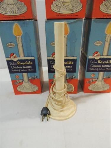 LOT 6 VINTAGE 1950S ROYALITE CHRISTMAS CANDLE LIGHTS. IN ORIGINAL BOX. LIKE NEW. AS SHOWN. VIEW PICTURE FOR DETAIL.
