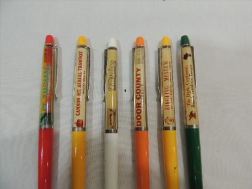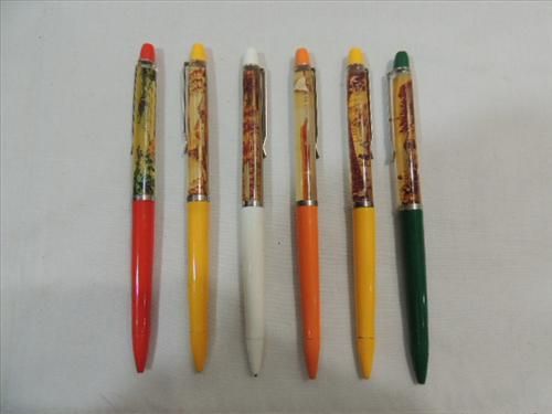 LOT 6 VINTAGE ACTION MOVABLE SCENE BALL POINT PENS. VARIOUS TOURIST SITES: DOOR COUNTY, RINGLING MUESEUM, BUSCH GARDENS, ST THOMAS AND MORE. AS SHOWN. VIEW PICTURE FOR DETAIL.