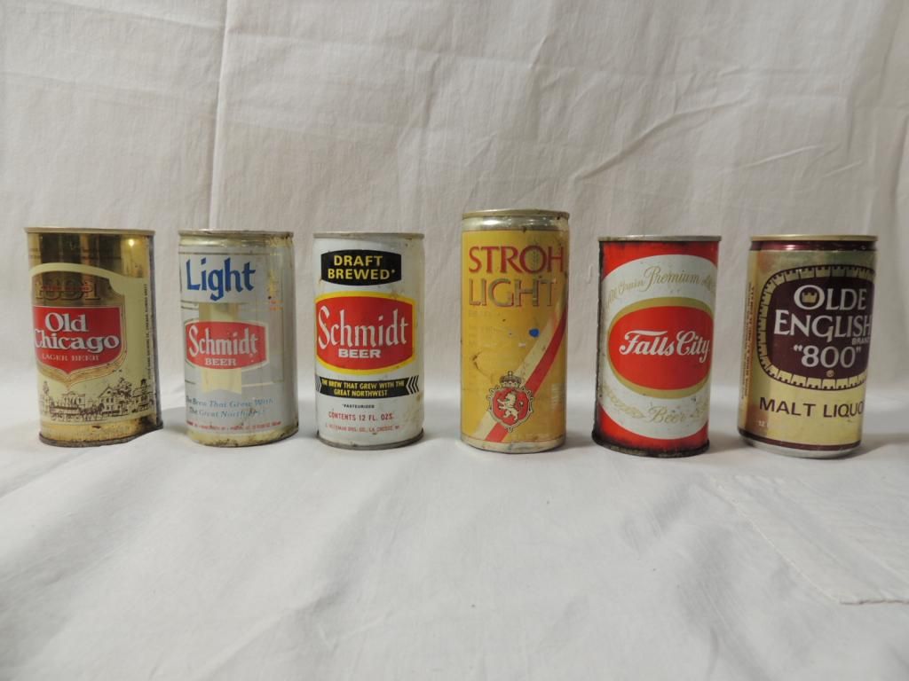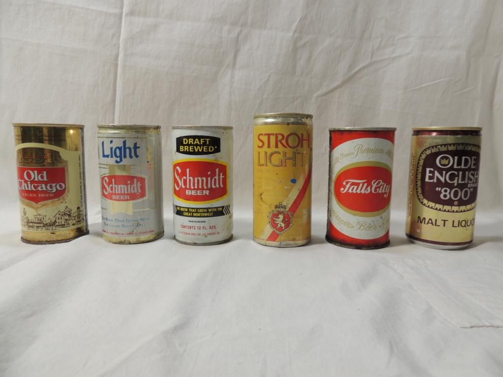 BEER MEMORABILIA , SCHMIDT BEER, FALLS CITY, OLDE ENGLISH BEER, OLD CHICAGO. VINTAGE BEER CANS. MEMORABILIA. BEER COLLECTIBLE. BREWARANA. MALT LIQUOR. RARE CANS. AS SHOWN. SEE PHOTO FOR MORE DETAILS.