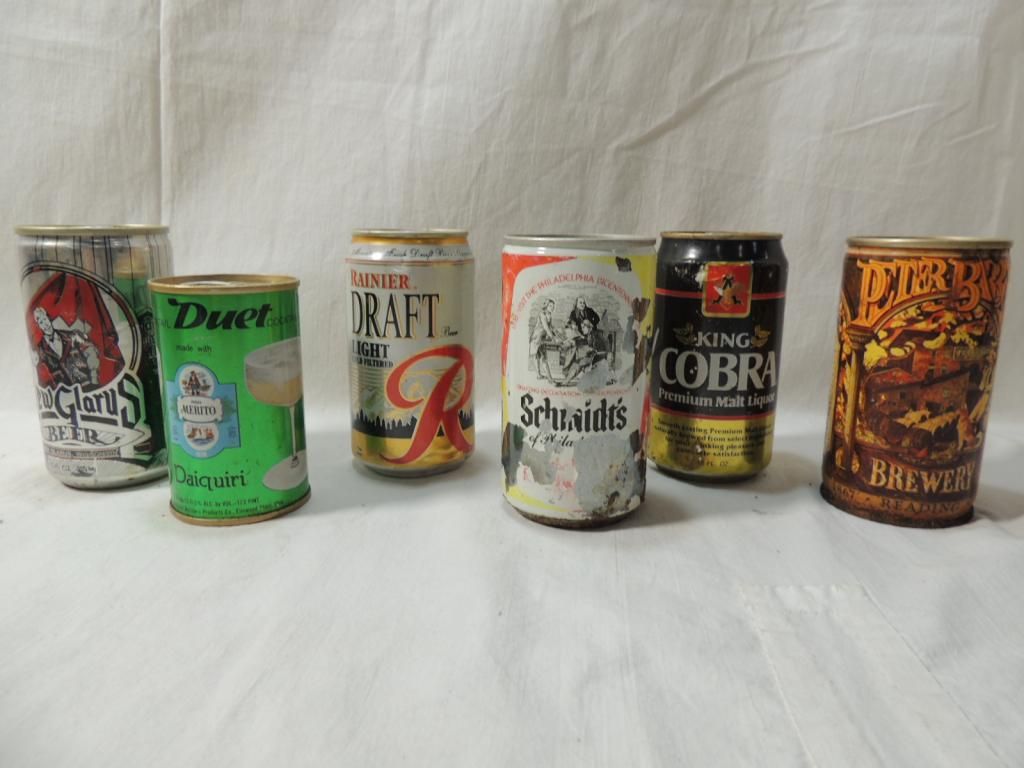 SOME FULL SOME EMPTY. 12OZ CANS. KING COBRA, NEW GLARUS, DUET, PETER BARBBEY. VINTAGE BEER CANS. MEMORABILIA. BEER COLLECTIBLE. BREWARANA. MALT LIQUOR. RARE CANS. AS SHOWN. SEE PHOTO FOR MORE DETAILS.