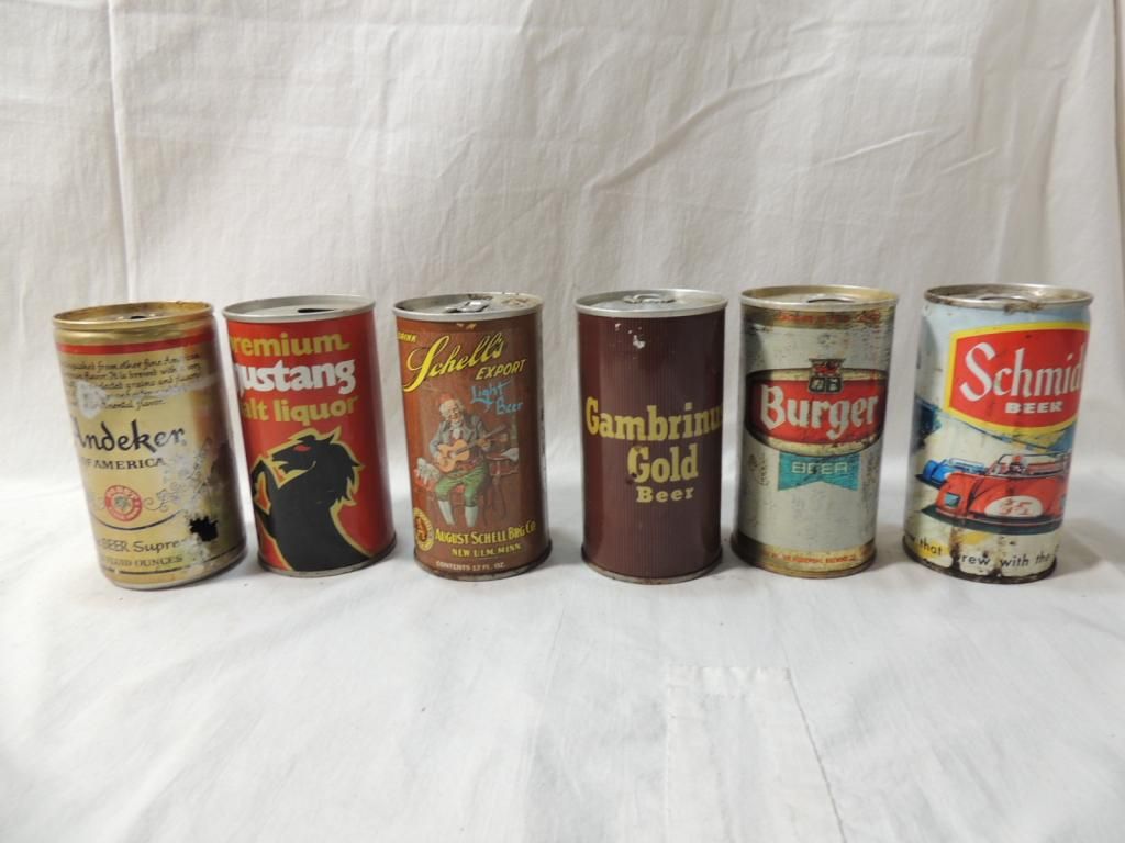 MUSTANG MALT LIQUOR, SCHELLS EXPORT, GAMBRINUS GOLD, SCHMIDT, BURGER, ANDEKER SOME FULL SOME EMPTY. 12 OZ CANS. VINTAGE BEER CANS. MEMORABILIA. BEER COLLECTIBLE. BREWARANA. MALT LIQUOR. RARE CANS. AS SHOWN. SEE PHOTO FOR MORE DETAILS.
