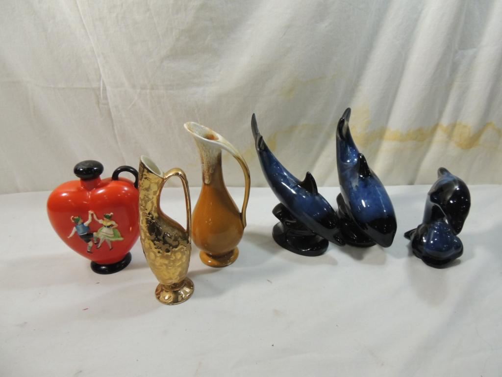 LOT 6 VINTAGE CERAMIC COLLECTIBLES, VASES, DOLPHIN