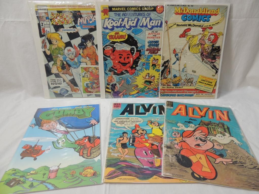 SPEED RACER, KOOL-AID MAN, MCDONALDLAND COMICS, GUMBY, ALVIN, AS SHOWN. SEE PHOTO FOR MORE DETAILS.
