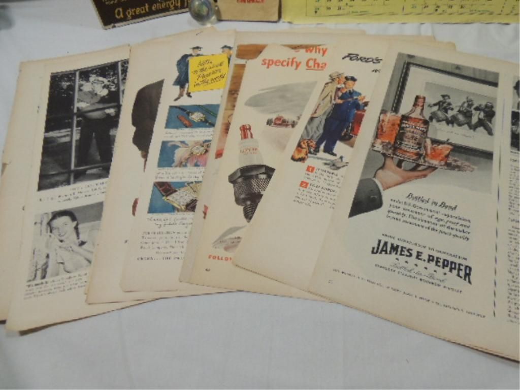 1912 POSTCARD, TINY TABLET NOTEPAD, 1945 CALENDAR, VINTAGE NOTE BOOK, GUN CLUB 1989 CALENDAR, VINTAGE NEWSPAPER ADVERTISEMENT INSERTS. AS SHOWN. SEE PHOTO FOR MORE DETAILS.