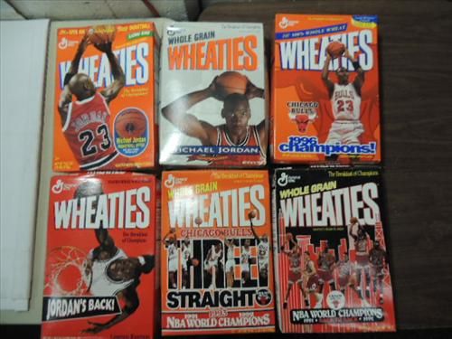 LOT 6 WHEATIES CEREAL BOXES CHICAGO BULLS ON COVER. AS SHOWN. VIEW PICTURE FOR DETAIL.