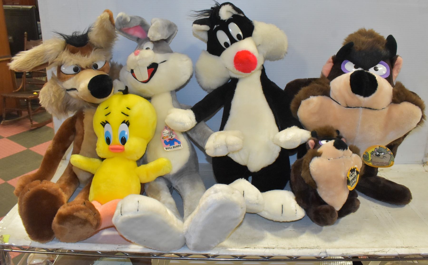 SOME WITH TAGS. WILLIE COYOTE, 2 TAZ WITH 1971 WARNER BROS TAGS. SYLVESTER AND TWEETY MISSING 1971 TAGS BUGS BUNNY 1983 WARNER BROS TAG**ALL ITEMS MUST BE REMOVED BY 5PM MONDAY, OCTOBER 17TH, 2022. ALL REMAINING ITEMS WILL BE SUBJECT TO A $6.00 PER DAY STORAGE CHARGE. ANY ITEMS REMAINING AFTER MONDAY, OCTOBER 29, 2022 WILL BE CONSIDERED FORFEITED. NO REFUNDS WILL BE ISSUED FOR FORFEITED ITEMS. TO SCHEDULE A PICK UP APPOINTMENT CLICK HERE