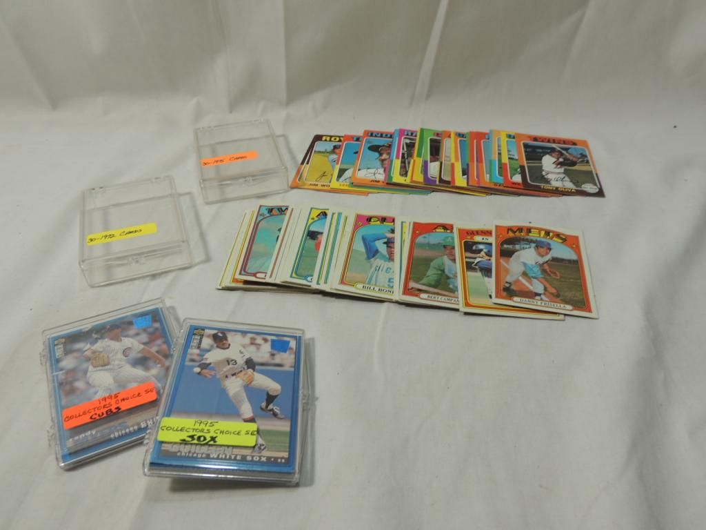 30 -1972 CARDS, 30-1975 CARD, 1995 COLLECTORS CHOICE CUBS CARDS 1995 COLLECTORS CHOICE SOX CARDS. AS SHOWN .SEE PHOTO FOR MORE DETAILS.