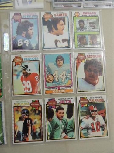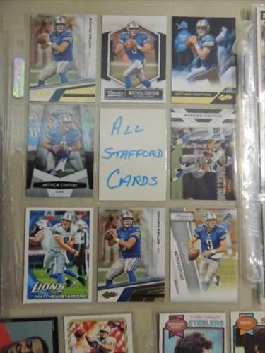 LOT 65 FOOTBALL PLAYER CARDS: 44 ROOKIES, 8 ALL MATTHEW STAFFORD CARDS, 9 1979 TOPPS, 4 1995 SKY BOX. AS SHOWN. VIEW PICTURE FOR DETAIL.