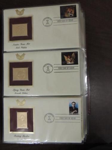 LOT 66 2002-03 22KT GOLD REPLICAS OF US POSTAGE ON COVERS.  IN RING BINDER.  AS SHOWN.  VIEW PICTURE FOR DETAIL.