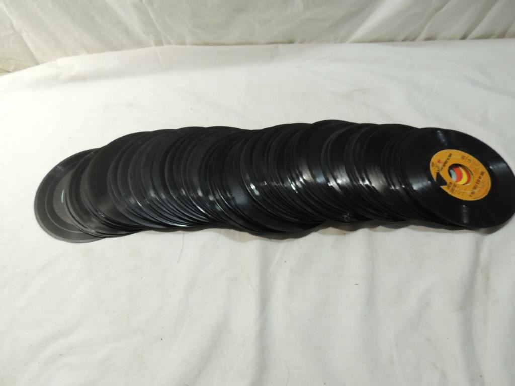 VINTAGE 45 VINYL RECORDS. COLLECTIBLE VINTAGE GOOD CONDITION. ASSORTED MUSIC STYLES. AS SHOWN SEE PHTO FOR MORE DETAILS