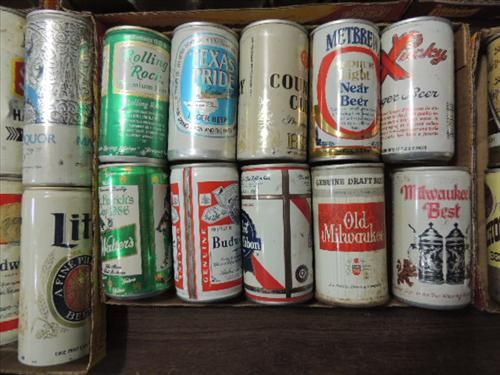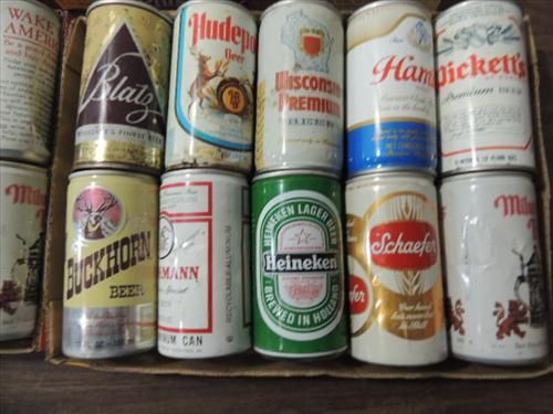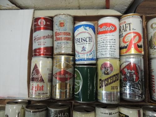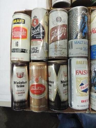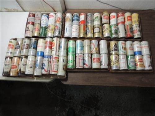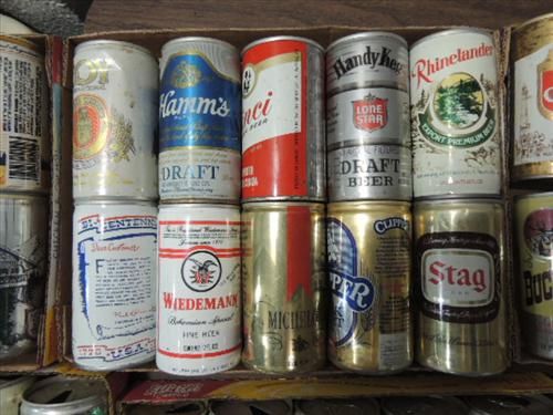 LOT 66 VINTAGE BEER CANS: (16) 16 OZ & (50) 12 O: BUCKHORN, HAMMS. SCHMIDT, RHINELANDER AND MUCH MORE. GREAT START FOR A COLLECTOR. AS SHOWN. VIEW PICTURE FOR DETAIL.