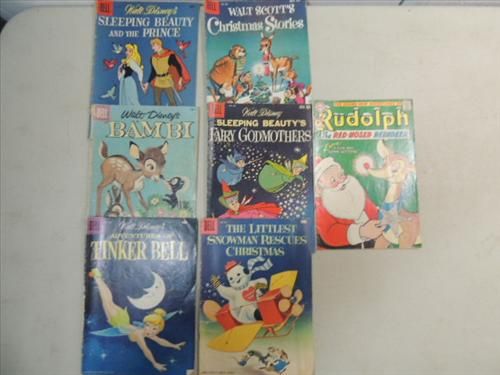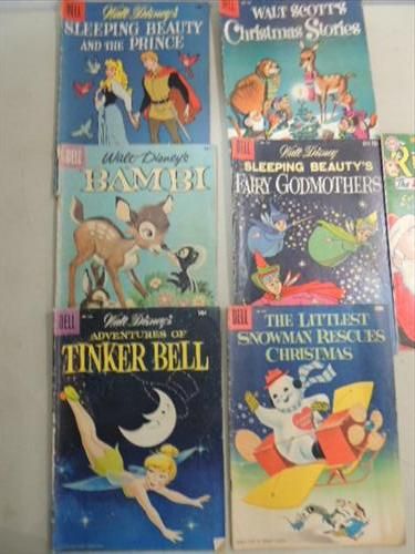 LOT 7 1956-59 SILVER AGE DELL COMICS: WALT DISNEY: SLEEPING BEAUTY, BAMBI, TINKER BELL, CHRISTMAS STORIES AND MORE. AS SHOWN. VIEW PICTURE FOR DETAIL.