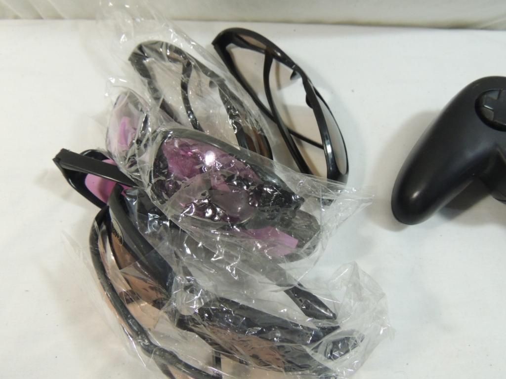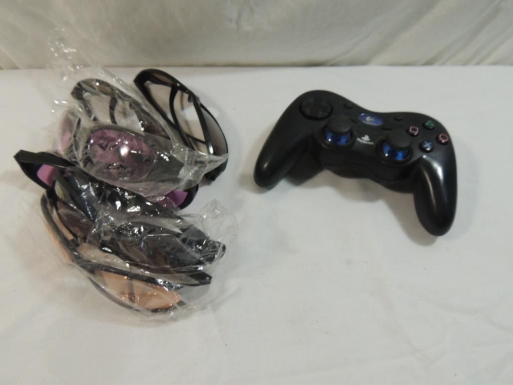 SUNGLASSES NEW IN PLASTIC SUNGLASSES AND PLAYSTATION CONTROLER. AS SHOWN SEE PHOTO FOR MORE DETAILS.