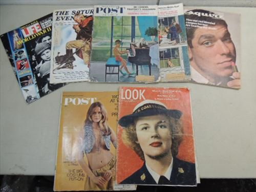 LOT 7 ASSORTED EMPHERIA 1960'S MAGAZINES: POST, LOOK, ESQUIRE AND MORE. AS SHOWN. VIEW PICTURE FOR DETAIL.