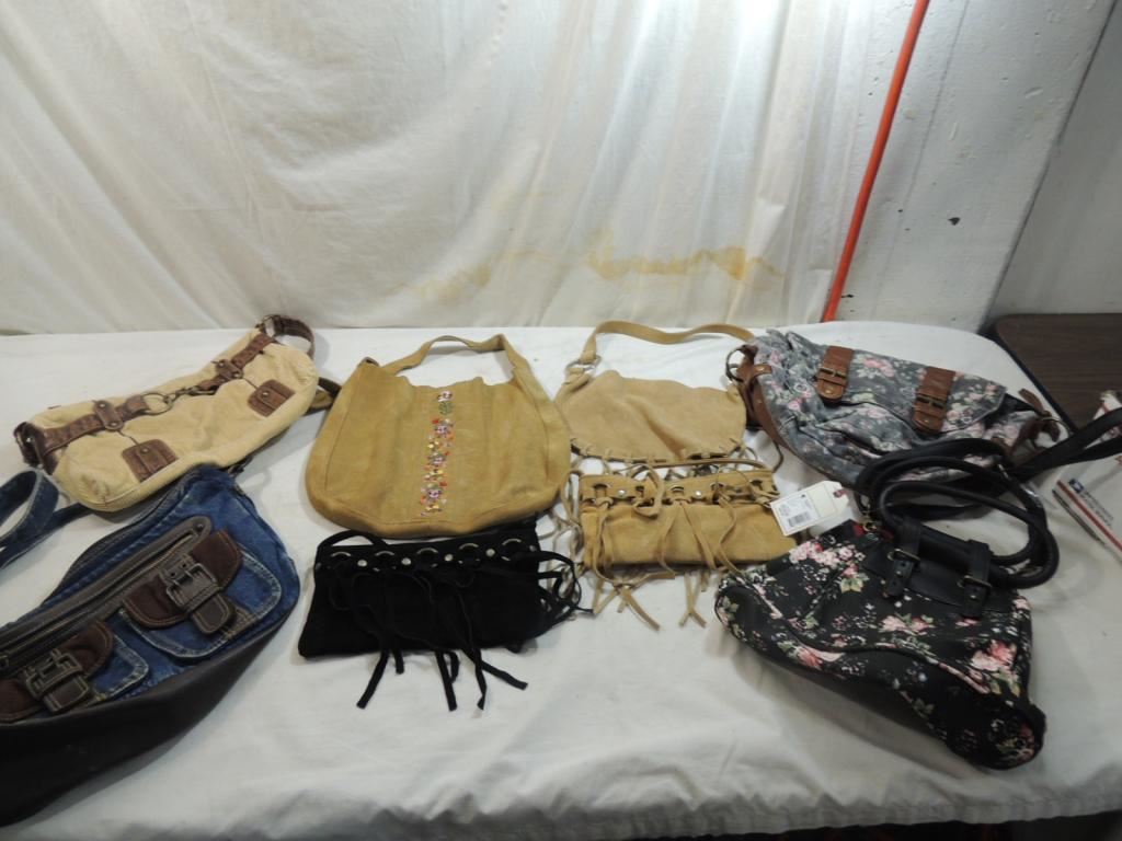 HANDBAGS, PURSES, SHOULDER PURSES, CLUTCHES, DESIGNER BAGS, ASSORTED STYLES, AS SHOWN SEE PHOTO FOR MORE DETAILS.