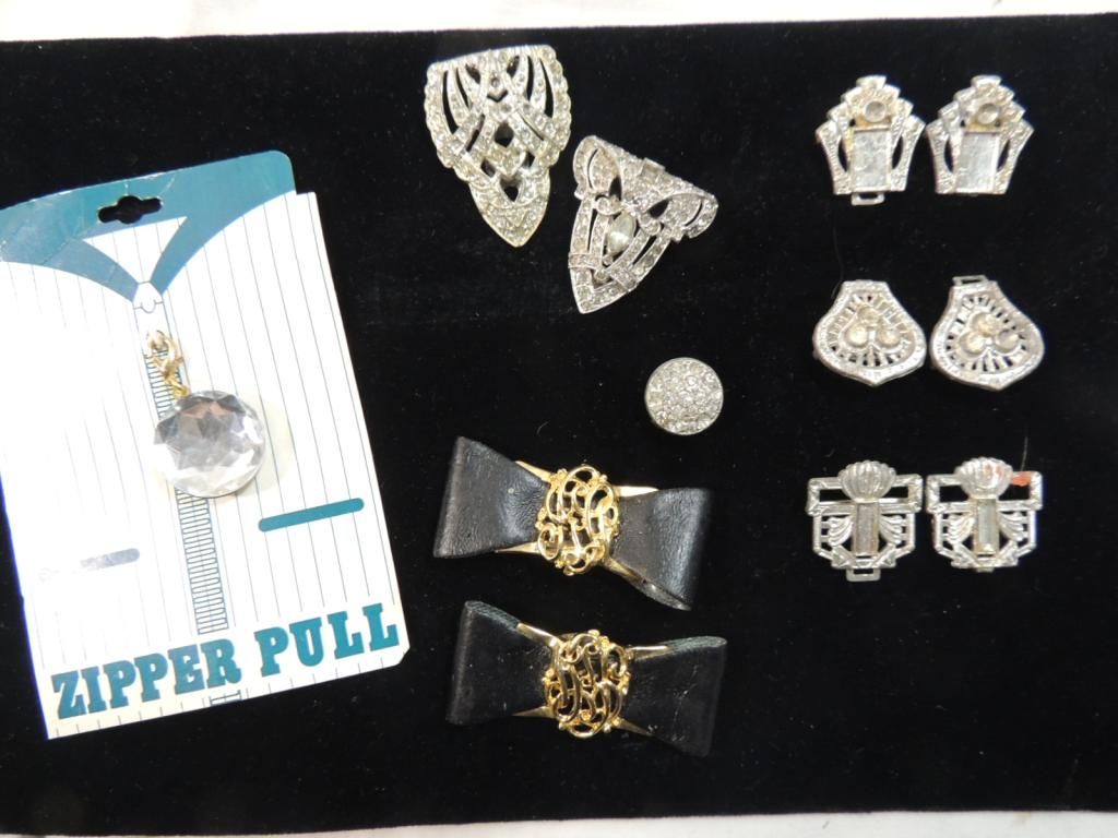 LOT 7 ASSORTED VINTAGE SHOE CLIPS, COLLAR COVERS
