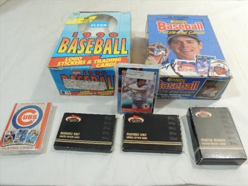 LOT 7 BASEBALL PLAYER CARD SETS: 1990 FLEER WAX PACK, 1990 DONRUSS WAX PACK, & 5 STADIUM CLUB. AS SHWON. VIEW PICTURE FOR DETAIL.