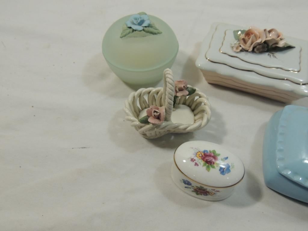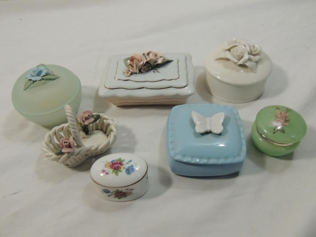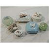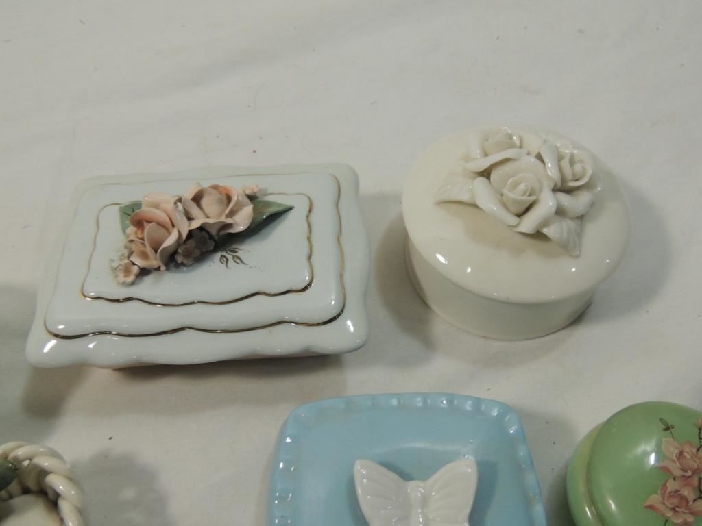 CERAMIC TRINKET BOX, DECORATIVE, FROSTED, COLLECTIBLE, ROSES, FLORAL, BUTTERFLY, COLLECTIBLE, AS SHOWN SEE PHOTO FOR MORE DETAILS.
