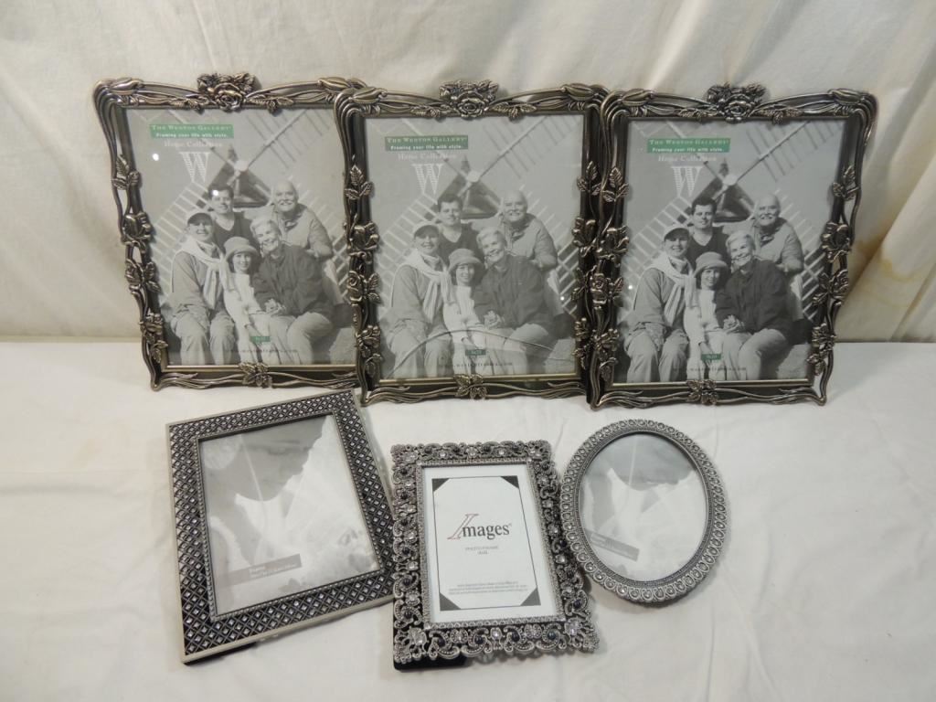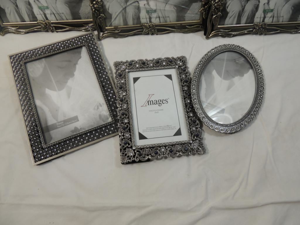 METAL FRAMES, VICTORIAN STYLE, JEWELED, DETAILED, ASSORTED PICTURE FRAMES, DECORATIVE, ELEGANT, AS SHOWN SEE PHOTO FOR MORE DETAILS.