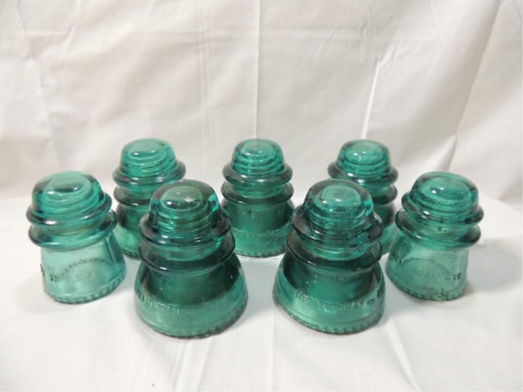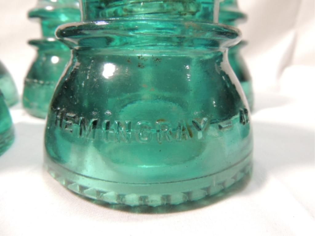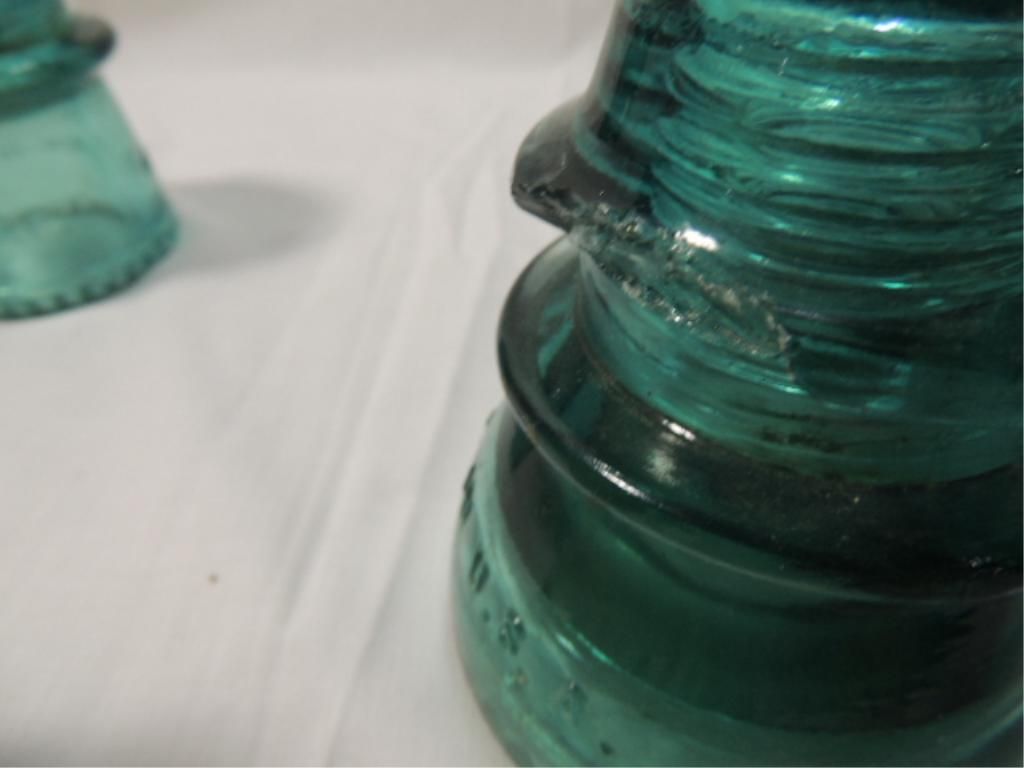 HEMINGRAY GLASS INSULATORS MADE IN USA. 42 & 16. ONE HAS SMALL CHIP ON SIDE. SEE PICTURE AS SHOWN SEE PHOTO FOR MORE DETAILS.