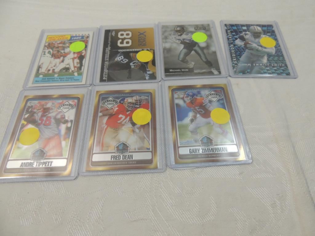 DAN MARINO, LC GREENWOOD, MICHAEL IRVIN, EMMITT SMITH, ANDRE TIPPETT, FRED DEAN, GARY ZIMMERMAN FOOTBALL PLAYER CARDS. TRADING CARDS. COLLECTIBLE. FOOTBALL MEMORABILIA. GOOD CONDITION AS SHOWN. SEE PHOTO FOR MORE DETAILS.