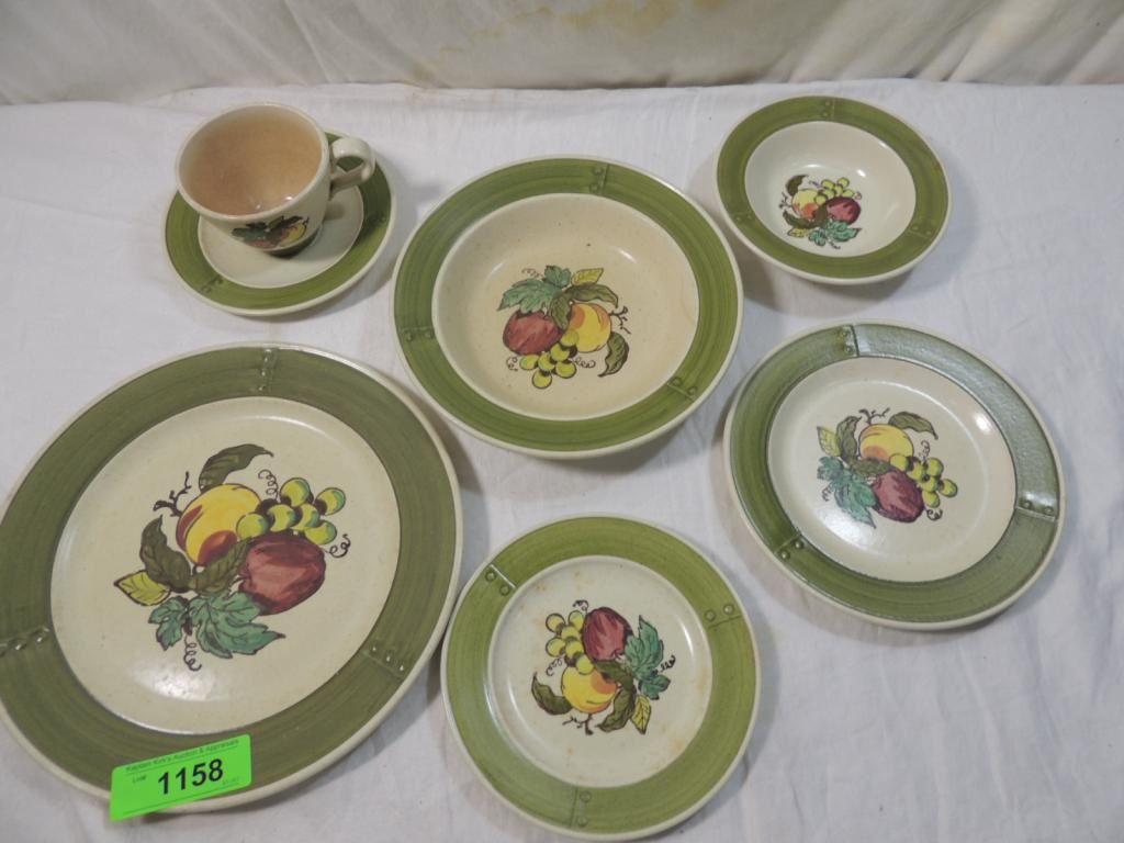 DINNER PLATE, SALAD BOWL, SOUP BOWL, SMALL PLATE, SIDE PLATE, SAUCER, CUP, VINTAGE FRUIT PATTERN AS SHOWN SEE PHOTO FOR MORE DETAILS.
