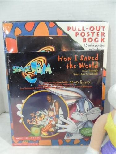 LOT 7 SPACE JAM COLLECTIBLES: 3 LOONEY TUNES, MICHAEL JORDAN MUG & POSTER. AS SHOWN. VIEW PICTURE FOR DETAIL