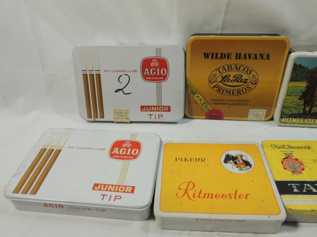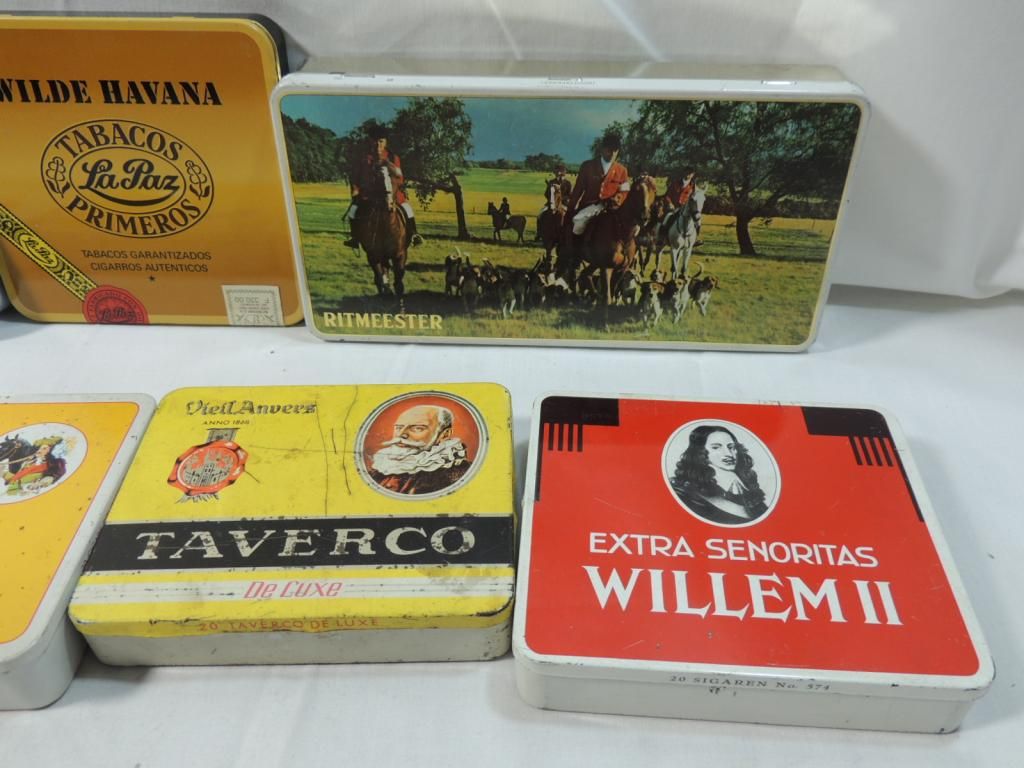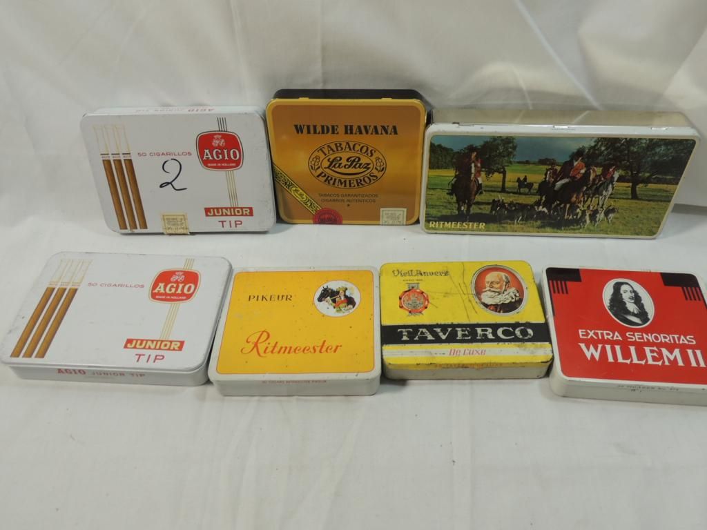 7 ASSORTED CIGAR TINS. AS SHOWN. SEE PHOTO FOR MORE DETAILS.