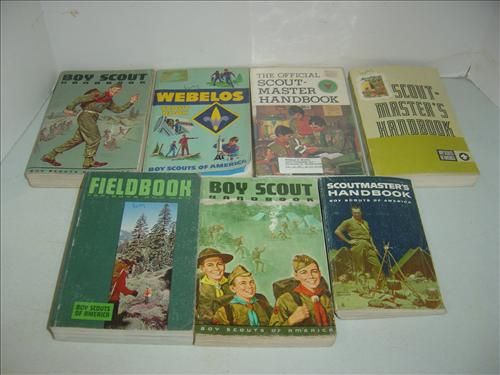 LOT INCLUDES: BSA FIELDBOOK FOR BOYS AND MEN, 1967 BSA BOY SCOUT HANDBOOK, 1962 BSA BOY SCOUT HANDBOOK, 1974 WEBELOS SCOUT BOOK, 1981 THE OFFICIAL SCOUT-MASTER HANDBOOK, 1972 BSA SCOUT-MASTERS HANDBOOK, AND 1966 BSA SCOUTMASTERS HANDBOOK. AS SHOWN. VIEW PICTURE FOR DETAIL.