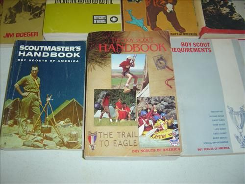 LOT INCLUDES: 1974 BSA BEAR CUB SCOUT BOOK, 1970 BOY SCOUTS REQUIREMENTS, 1989 BOY SCOUT HANDBOOK - THE TRAIL TO EAGLE, THE HIKER'S & BACKPACKER'S HANDBOOK BY BILL MERRILL, 1967 BSA SCOUTMASTERS HANDBOOK, 1972 SCOUT-MASTERS HANDBOOK, AND THE SCOUTMASTER BY IM BOEGER. AS SHOWN. VIEW PICTURE FOR DETAIL.