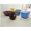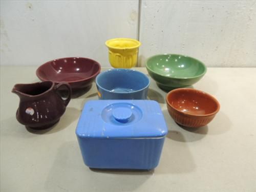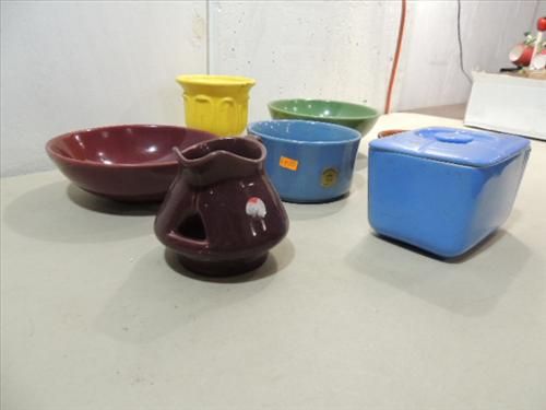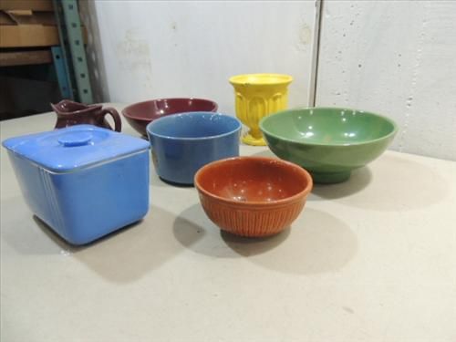 LOT 7 VINTAGE HAEGER & WESTINGHOUSE CERAMIC BOWLS, REFRIG CONTAINER, PLANTERS AND MORE. SEVERAL ITEM HAVE NO MARKS. AS SHOWN. VIEWPICTURE FOR DETAIL.