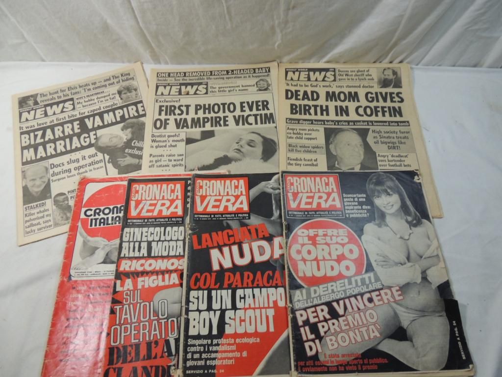 VINTAGE TABLOIDS ITALIAN AND US COLLECTIBLE NUDITY IN ITIALIAN MAGAZINES NEWSPAPERS AS SHOWN SEE PHOTO FOR MORE DETAILS.