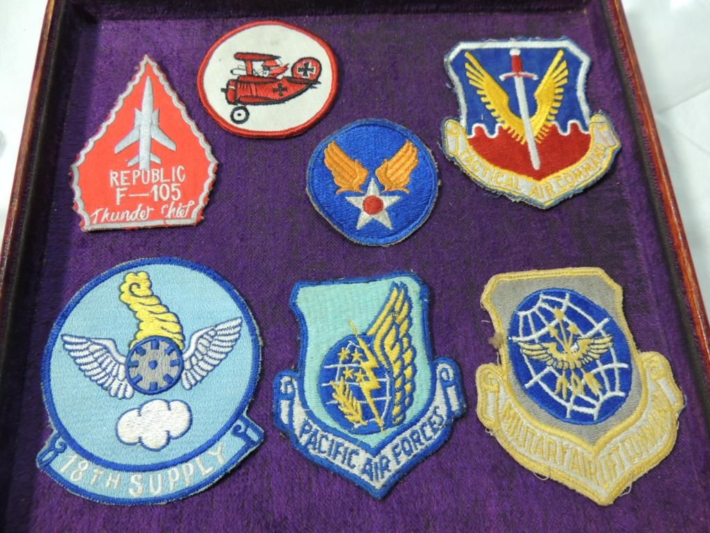 MILITARY PATCHES. AIR FORCE, ARMY, NAVY, AIR LIFT, MILITARY. WINGS, VINTAGE, WORLD WAR, F105 THUNDER CHIEF, STAR WINGS, PACIFIC AIR FORCES, AIRLIFT COMPANY, TACTICAL AIR COMMAND. AS SHOWN. SEE PHOTO FOR MORE DETAILS.