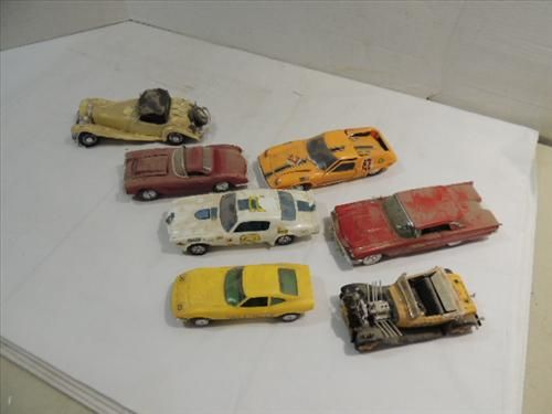 LOT 7 VINTAGE PLASTIC MODEL CARS ASSEMBLED: (THEY ARE DIRTY BUT WILL CLEAN UP REAL NICE). FIREBIRD, ROADSTER, THUNDERBIRD, CORVETTE AND MORE. AS SHOWN. VIEW PICTURE OFR DETAIL.