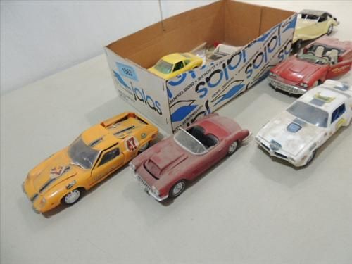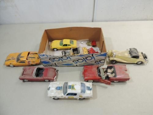 LOT 7 VINTAGE PLASTIC MODEL CARS ASSEMBLED: (THEY ARE DIRTY BUT WILL CLEAN UP REAL NICE). FIREBIRD, ROADSTER, THUNDERBIRD, CORVETTE AND MORE. AS SHOWN. VIEW PICTURE OFR DETAIL.