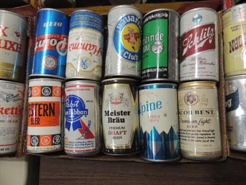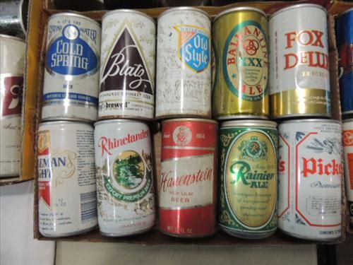 LOT 70 VINTAGE 12 OZ BEER CANS: BLATZ, ANDEKER, POINT, ALPINE, CHERRY AND MUCH MORE. VIEW PICTURE FOR DETAIL.
