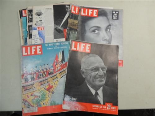 LOT 8 1940S TO 60S EMPHERIA LIFE MAGAZINES: THEY HAVE CONDITIONAL ISSUES BUT WOULD BE GREAT TO GET CLASSIC ADS FROM AND FRAME. AS SHOWN. VIEW PICTURE FOR DETAIL. Q