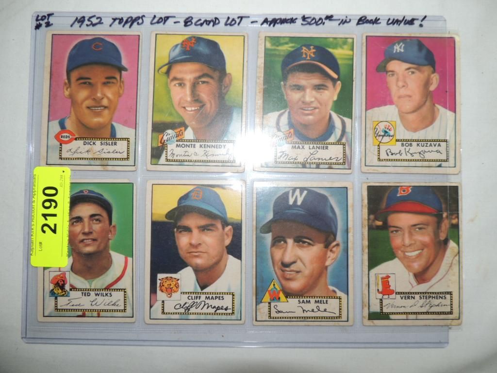 LOT 8 1952 TOPPS BASEBALL CARDS: MELE, WILKS, MAPE