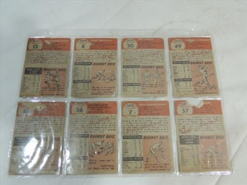 LOT 8 1953 TOPPS BASEBALL PLAYER CARDS: 13, 8, 20, 49, 14, 26, 7, 57. AS SHOWN. VIEW PICTURE FOR DETAIL.