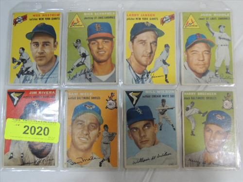 LOT 8 1954 TOPPS BASEBALL PLAYER CARDS #203, 147, 222, 200, 240, 191, 34 & 180. AS SHOWN. VIEW PICTURE FOR DETAIL.