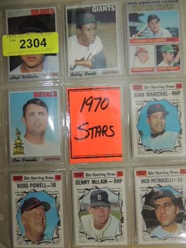 LOT 8 1970 TOPPS STAR BASEBALL PLAYER CARDS: #17, 321, 451, 425, 467, 457, 466, 66. AS SHOWN. VIEW PICTURE FOR DETAIL.