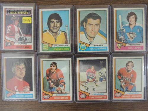 LOT 8 1974-75 TOPPS HOCKEY PLAYER CARDS. AS SHOWN. VIEW PICTURE FOR DETAIL.