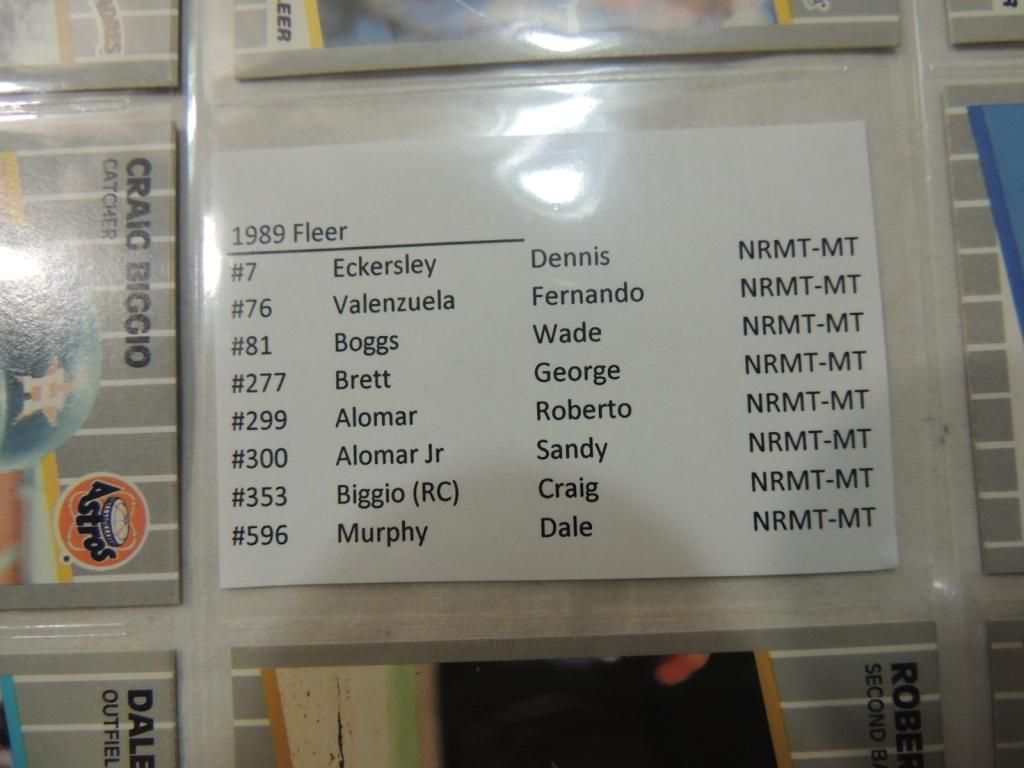 DENNIS ECKERSLEY, FERNANDO VALENZUELA, WADE BOGGS, GEORGE BRETT, ROVERTO ALOMAR, SANDY ALOMAR JR, CRAIG BIGGIO, DALE MURPHY BASEBALL PLAYER CARD. BASEBALL TRADING CARDS. COLLECTIBLE. GOOD CONDITION. GREAT CONDITION. AS SHOWN. SEE PHOTO FOR MORE DETAILS.