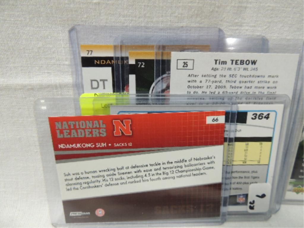 LOT 8 2002-10 FOOTBALL ROOKIE CARDS: PATRICK CRAYTON, TIM TEBOW, DEZ BYRANT AND MORE. AS SHOWN. VIEW PICTURE FOR DETAIL.