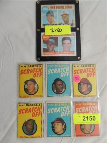 LOT 8 (6) 1970 TOPPS SCRATCH OFF CARDS & 1968, 69 TOPPS #384 519 ROOKIE CARDS. AS SHOWN. VIEW PICTURE FOR DETAIL.