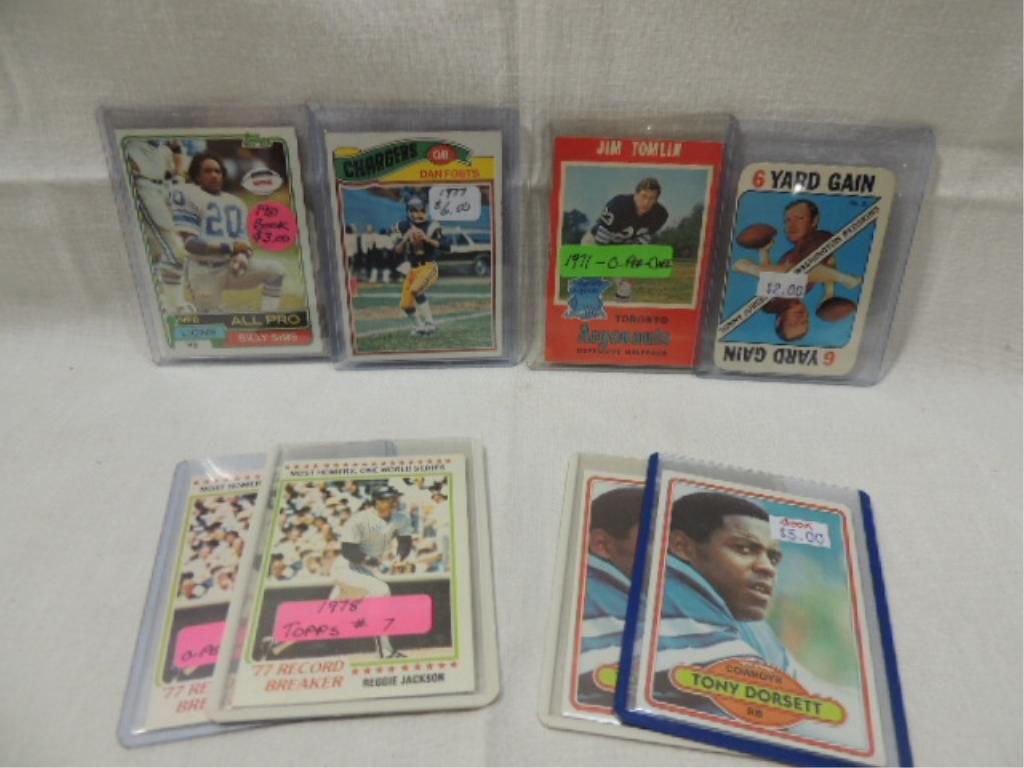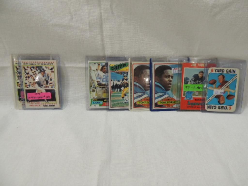 LOT 8 (6) FOOTBALL PLAYER CARDS. 2 1978 TOPPS OPEECHEE #7 #242 AS SHOWN. SEE PICTURES FOR DETAILS.