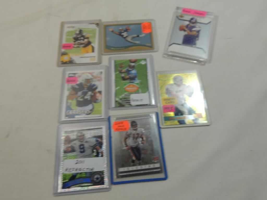 JONATHAN DWYER, RANDY MOSS, VINNY TESTAVERDE, DOUG FLUTIE, TIM BROWN, OZZIE NEWSOME, FOOTBALL PLAYER CARDS. FOOTBALL TRADING CARDS. COLLECTIBLE. PROTECTIVE PLASTIC SLEEVE. SPORTS