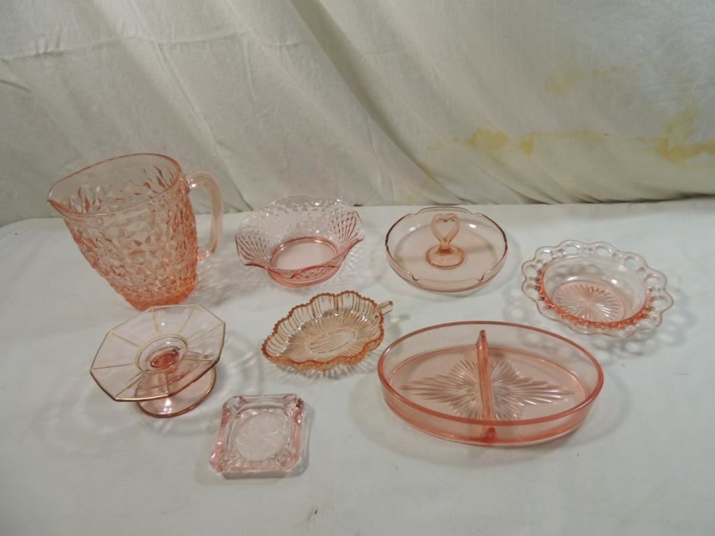 RELISH TRAY, CANDY DISH, BOWL, PITCHER, ASHTRAY, MISC ASSORTED PATTERNS VINTAGE COLLECTIBLE GOOD CONDITION AS SHWON SEE PHOTO FOR MORE DETAILS